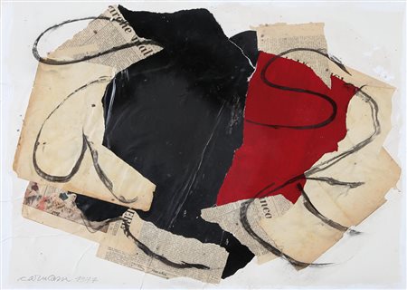 Lot 5 AGENORE FABBRI Barba (Pt) 20/05/1911 - Savona 07/11/1998 Senza titolo, 1959 tecnica mista su carta applicata su cartone cm. 33x23,5; firma e anno in basso a destra, dichiarazione d'autenticità a cura del figlio Luca su foto.