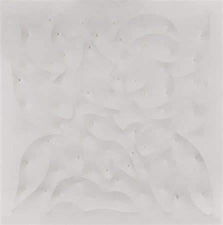 Lot 14 GIUSEPPE AMADIO Todi 19/05/1944 ACZO tela estroflessa bianca cm. 75x75, firma e titolo al retro, opera senza cornice.