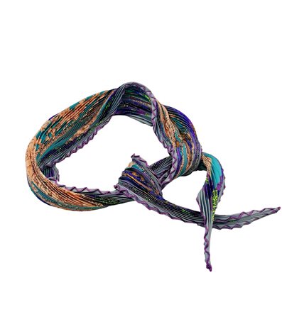 Lot 1 HERMES Foulard plissé TORANA. 1987. Seta. Cm 90,00 x 90,00. Foulard twill in seta, disegnato da Annie Favrie 1° Edizione 1987, Copyright. Made in France. Etichetta di composizione tessile. Orlo arrotolato a mano. Nei colori dell'azzurro medio, nocciola, verde brillante, rosa.