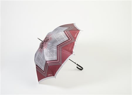Lot 6 FERRE' GIANFRANCO Ombrello da donna in seta stampa Principe di Galles. Seta e nylon. . Ombrello da donna in seta, Gianfranco Ferré, con fantasia Principe di Galles nei toni del grigio argento, borsi a contrasto bordeaux e nero, firma Ferré Milano. Nuovo con etichetta.