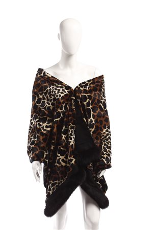 Lot 17 AUTORE NON IDENTIFICATO Stola. Tessuto. Cm 60,00 x 185,00. Stola tessuto animalier, con bordo in volpe nera. Reversibile interno in cashmere nero.