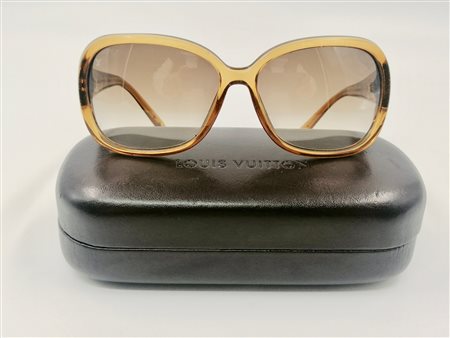 Lot 24 VUITTON LOUIS Occhiali da sole. Acetato e metallo.. . Occhiali da sole color miele con loghi dorati e glitterati. Codice: Z0460W . Made in Italy. Condizioni eccellenti.
