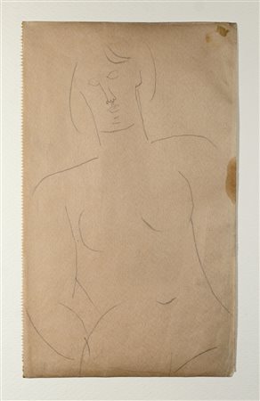 Lot 2 MODIGLIANI AMEDEO (1884 - 1920) NUDO (NU ASSIS). 1915. mina di piombo su carta. Cm 13,00 x 21,00. sul retro: timbro ‘AMEDEO MODIGLIANI DESSIN COLL. (…) N° 14’