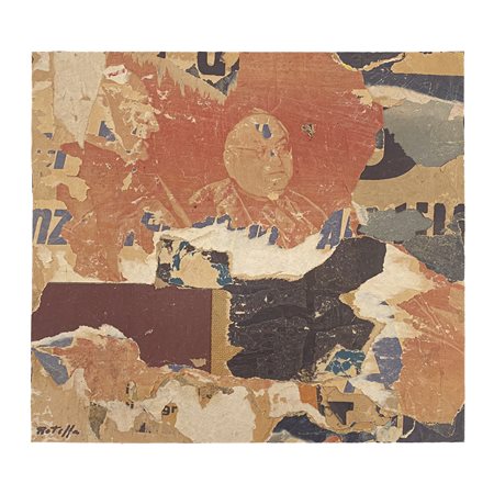 Lot 11 ROTELLA MIMMO (1918 - 2006) SENZA TITOLO. 1961. décollage su cartoncino, manifesti e colla. Cm 39,00 x 36,00. firma
