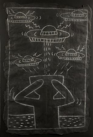 Opera proveniente dal ciclo dei "Subway drawings" : le prime opere in gessetto realizzate, a New York nei primi anni'80, sulle affissioni in carta di colore nero che coprivano le pubblicità scadute. -