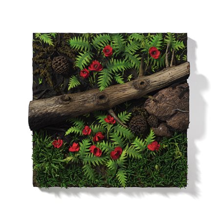 Lot 18 GILARDI PIERO (1942 - 2023) PAPAVERI E FELCI. 1996. poliuretanto e acrilico su tavola entro teca di plexiglass. Cm 100,00 x 100,00. sul retro: firma, titolo e data