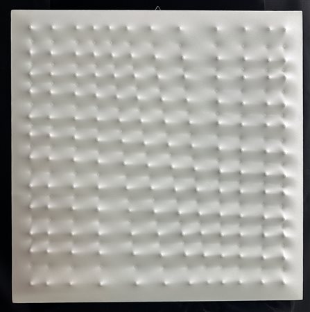 Lot 22 DADAMAINO (1935 - 2004) RILIEVO (CROMORILIEVO), 1973-74. tasselli di legno verniciato su tavola. Cm 90,00 x 90,00 x 4,50. sul retro: firma, data e titolo