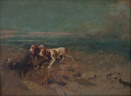 Lot 9 Tito Pellicciotti Barisciano (AQ) 1871-1950 Cani da caccia Olio su tavola cm 21x27,5