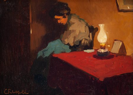 Lot 10 Cafiero Filippelli Livorno 1889 - 1973 Interno con figura Olio su tavola cm 14x19