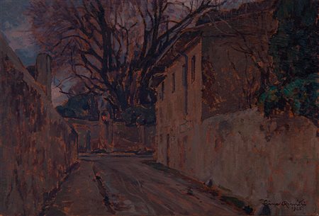 Lot 11 Gino Romiti Livorno 1881 - 1967 Verso la sera, 1925 Olio su tavola cm 21x31 La vita di Gino Romiti, nato a Livorno nel 1881 e scomparso nel 1967, è una storia di determinazione e passione che ha attraversato il mondo dell'arte con notevole impatto. Cresciuto in una famiglia modesta, Romiti si trovò presto ad affrontare le sfide finanziarie, ma non abbandonò mai la sua innata passione per la pittura. A soli sedici anni, riuscì a entrare alla Scuola di Guglielmo Micheli a Livorno, una vera e propria fucina d'arte, dove ebbe l'opportunità di interagire con artisti di spicco come Llewelyn Lloyd, Amedeo Modigliani e Giovanni Fattori. Questo periodo formativo fu fondamentale per plasmare la sua carriera artistica. Sin dall'inizio, Romiti partecipò a importanti esposizioni, tra cui la Permanente di Milano, la Biennale di Venezia e l'Internazionale di Bruxelles. Nel 1920 fu uno dei fondatori del Gruppo Labronico, un'associazione artistica che nacque proprio nel suo studio e di cui fu presidente dal 1943 al 1967. Durante questo periodo, le sue opere subirono un'importante influenza dall'esperienza divisionista, concentrandosi su tematiche legate alla sua città natale, come le pinete di Ardenza e i paesaggi marini. Grazie al suo profondo interesse per il mare, creò anche opere singolari che ritraevano il fondo marino. Purtroppo, lo scoppio della Prima Guerra Mondiale lo portò ad arruolarsi e combattere in Albania, dove realizzò numerosi disegni ispirati al paesaggio e alla vita militare. La sua intensa attività espositiva continuò nel 1922 con la partecipazione alla prima edizione della Primavera Fiorentina. L'ultima sua personale, la quarantacinquesima, si tenne a Siena presso la Galleria "La Balzana" nel 1964, e molte furono le sue retrospettive. Gino Romiti era non solo un talentuoso artista ma anche un uomo di profonda spiritualità e religiosità. La sua interpretazione pittorica della vita rifletteva il suo spirito cristiano di accettazione e fede. Le sue opere trasmettevano una luce "vera" che eguagliava la luce di Dio. La natura era la sua fonte d'ispirazione, e in essa trovava purezza, pace e serenità, rappresentando con semplicità ed entusiasmo ogni aspetto cromatico. I suoi quadri erano spesso caratterizzati da luminosità e cromatismi intensi. La rappresentazione della luce era centrale in tutte le sue opere, rendendo ogni forma e contenuto dorati e vibranti. Questi giochi di luce e colori si fondevano in una sinfonia che invitava alla riflessione e talvolta alla preghiera. La sua abilità nel catturare la luce in modo magistrale induceva alla meditazione e suggeriva una pausa nell'agitazione umana, incoraggiando le persone a riflettere sulla loro esistenza in rapporto all'Universo. Questo Universo era simbolicamente rappresentato dalla bellezza della natura, vista come l'elemento perfetto e sublime della creazione divina, e Romiti, con umiltà, portava rispetto a questa grandezza. Le opere di Gino Romiti erano veri e propri inno alla vita, una testimonianza della sua profonda connessione con il mondo che lo circondava e con la spiritualità che permeava ogni aspetto della sua arte.