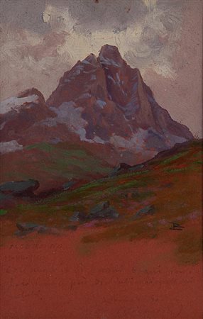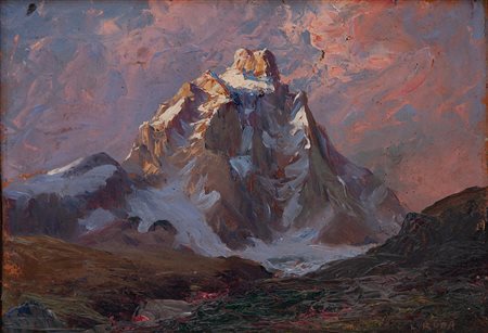Lot 24 Leonardo Roda Racconigi 1868 - Torino 1933 Il Cervino Olio su cartone cm 13,5x9,5 Leonardo Roda è nato nel 1868 a Racconigi, Italia. Cresciuto in una famiglia di alpinisti e artisti botanici, ha coltivato sin da giovane l'amore per la montagna e l'arte. Ha iniziato la sua carriera artistica nel 1889, esponendo opere presso la Promotrice di Torino. Roda era noto per i suoi dipinti di paesaggi alpini e scene della vita di montagna, spesso ritraendo il maestoso Cervino. Ha anche dipinto paesaggi della pianura padana e del mare ligure. Nel corso della sua carriera, ha ricevuto riconoscimenti e premi per le sue opere, ma verso la fine degli anni '20 ha abbandonato l'attività espositiva e si è ritirato dall'ambiente artistico. La sua pittura è stata descritta come un equilibrio tra realismo e espressionismo, con un'attenzione particolare alla luce e ai cambiamenti atmosferici. Roda è stato elogiato per la sua capacità di catturare la bellezza della natura, sia nelle montagne che nella campagna. La sua salute ha iniziato a declinare negli anni '30, e Roda è morto nel 1933. Sebbene la critica dell'epoca non sia stata sempre gentile con lui, le sue opere sono ancora oggi ammirate e conservate in collezioni private e musei.