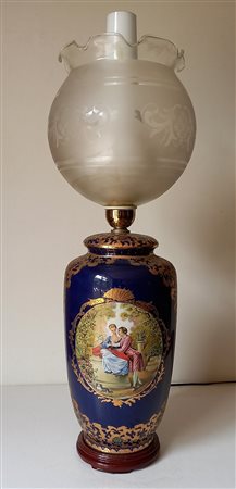Lot 16 LUME IN PORCELLANA DECORATA IN POLICROMIA E ORO SU BASE IN LEGNO H.CM.47
