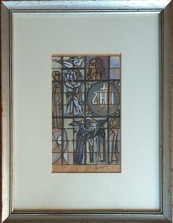 Lot 6 CRISTOFORO DE AMICIS (1902-1987) STUDIO PER VETRATA - TECNICA MISTA SU CARTA CM.30X18 FIRMATA - ARCHIVIATA