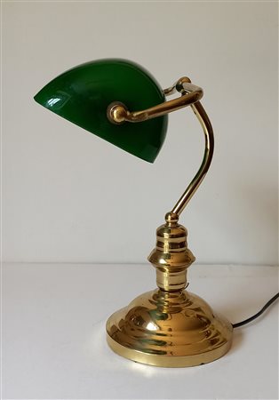 Lot 7 LAMPADA MINISTERIALE DA TAVOLO IN OTTONE E VETRO H.CM.35 - LIEVE AMMACCATURA ALLA BASE