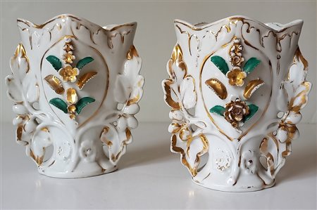 Lot 9 DUE VASI CORNET IN CERAMICA POLICROMA E DORATA H.CM.19 - DIFETTI E MANCANZE