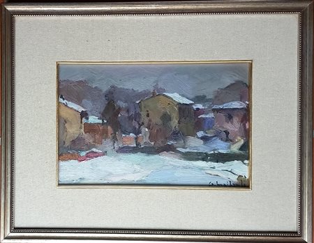 Lot 17 GIACOMO MALFANTI (1907-1998) NEVICATA - OLIO SU TAVOLA CM.20X30 FIRMATO IN BASSO A DESTRA