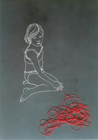 filo, gesso, pittura lavagna su tela