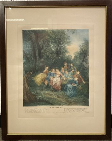 Lot 217 Lotto composto da due incisioni francesi colorate raffiguranti l'Estate e la Primavera, in cornici (difetti)