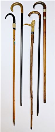 Lot 223 Arte del secolo XIX - XX. Lotto composto da cinque bastoni da passeggio con prese in corno (h. max cm 93) (difetti)