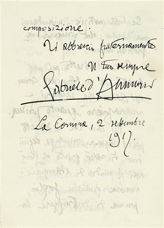 Lot 8 D'Annunzio Gabriele, Lettera autografa firmata. Datata 12 settembre 1912.