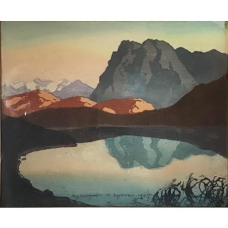 Lot 5 Max Sparer, xilografia a colori in cornice (1965), cm 42x52, firmato in basso al centro