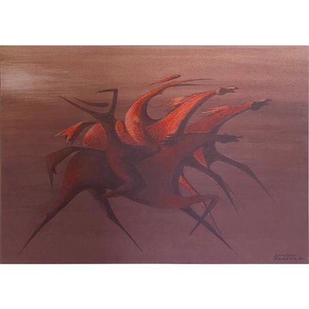 Lot 10 Eraldo Fozzer, cavalli rossi (1974), olio su tela, cm 50x70