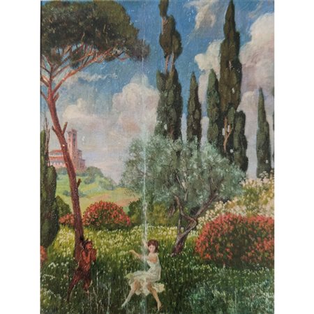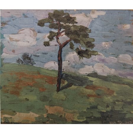 Lot 12 Camillo Rasmo, Albero solitario (1928), olio su cartone, cm 16x19