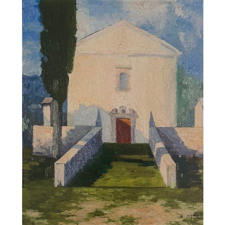 Lot 20 Attilio Lasta, Esterno di chiesa, olio su tavola, cm 27x21,5