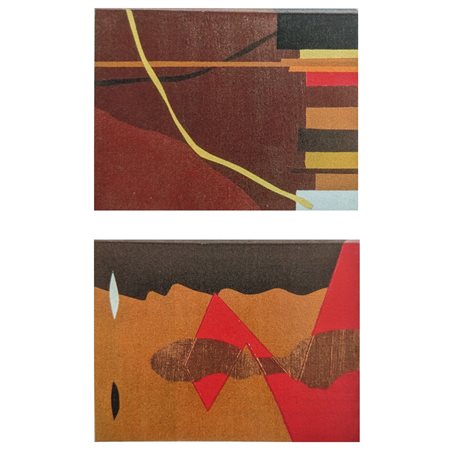 Lot 23 Bruno Zieger, La biblioteca abitata (1992), nr. 2 tavole - tecnica mista su tavola, cm 15x20 cad.