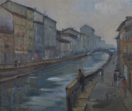 Lot 3 CAROZZI ENRICO (1910 - 1985) NAVIGLIO. olio su tela. Cm 60,00 x 50,00. al retro firma e dedica. . Cornice presente