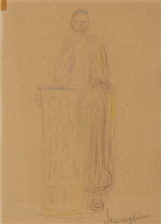 Lot 10 SEMEGHINI PIO (1878 - 1964) BOZZETTO PER AFFRESCO, 1939. pastelli e matita su carta. Cm 11,50 x 17,00. firma.
