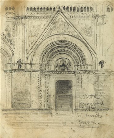 Lot 15 FRISIA DONATO (1883 - 1953) PORTA PRINCIPALE DEL DUOMO DI ORVIETO, 1928. Matita su carta. Cm 22,00 x 27,50. firma e titolo.