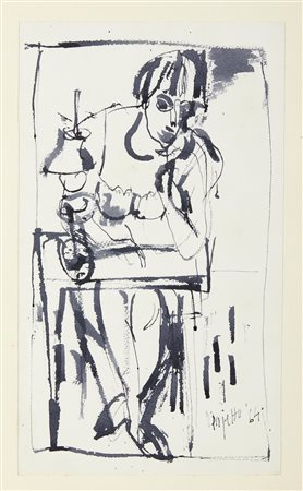 Lot 16 PAJETTA GUIDO PAOLO (1898 - 1987) SENZA TITOLO, 1964. China su carta. Cm 30,00 x 60,00. firma e data. Cornice presente
