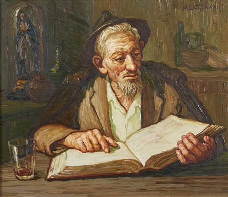 Lot 23 GRASSI ALFONSO (1918 - 2002) LO STUDIOSO, 1969. olio su tela. Cm 35,60 x 30,50. firma.