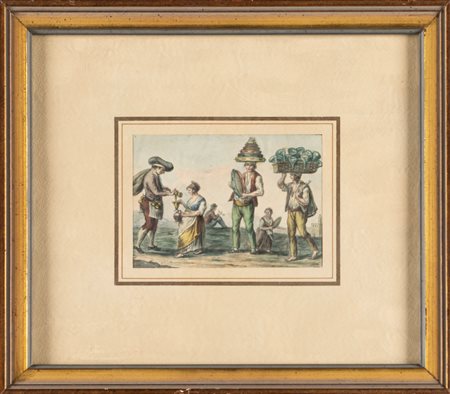 Lot 1014 Scuola napoletana, secolo XIX - Venditore di olio, tamburaio e caraffaro