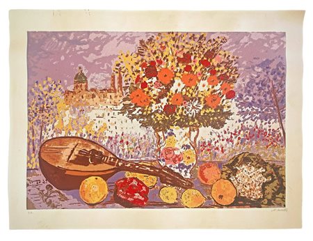 Lot 20 Michele Cascella (Ortona 1892-Milano 1989) - Natura morta cm 48x70 Litografia a colori Firmata in basso a destra M. Cascella. Opera sprovvista di cornice.