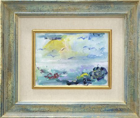 Lot 8 Ernesto Treccani, Senza titolo, anni Ottanta, olio su tela, cm 18x24, autentica a cura dell'artista su foto