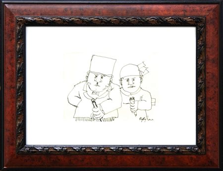 Lot 15 Riccardo Guarneri, Un dialogo nel teatrino, 2022, acquarello su cartoncino, cm 16.5x19, autentica a cura dell'artista