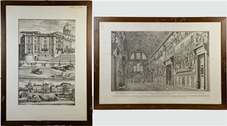 Lot 900 Due incisioni all'acquaforte su carta di cui una di G. Ottaviani da Panini raffigurante "La veduta della sala regia del Palazzo Vaticano" (cm 61x88 e 88x61)