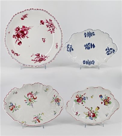 Lot 901 Manifattura Ginori, Doccia, secolo XVIII. Lotto composto da tre diverse marescialle e una ciotola in porcellana dipinte in policromia a mazzetti floreali e in monocromo blu a fiori sparsi (d max 26,5) (difetti e probabili restauri)