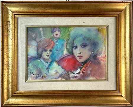 Lot 908 Firma in decifrata "Volti femminili" olio su tela (cm 20x30) firmato in basso a sinistra