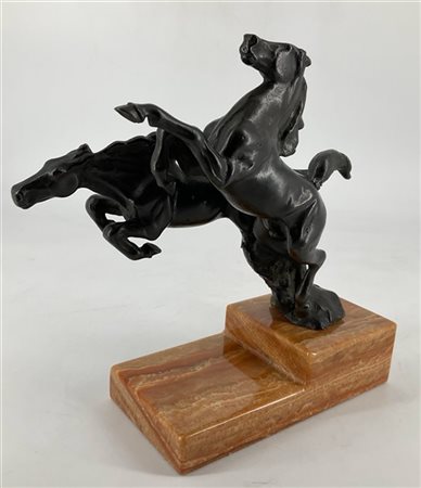 Lot 916 Ignoto, "Cavalli rampanti", scultura in fusione metallica su base in marmo (h scultura cm 20)