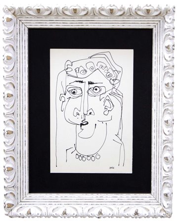 Lot 22 Gualtiero Nativi, Testa femminile, anni Quaranta, china su carta, cm 24x16,5, autentica a cura dell'archivio Nativi al num° D7316, cornice con imperfezioni