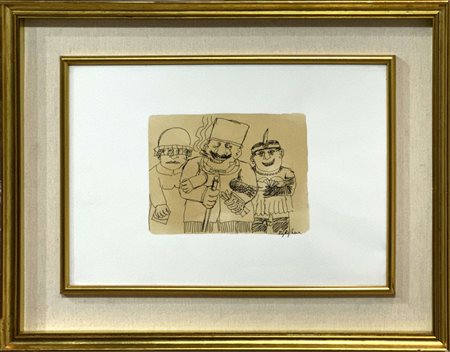 Lot 23 Franz Borghese, L’eterno triangolo, anni Ottanta, china su carta su fondo caffè, cm 35x50, pubblicato in 'l'Amore Classico' e a Catalogo Generale