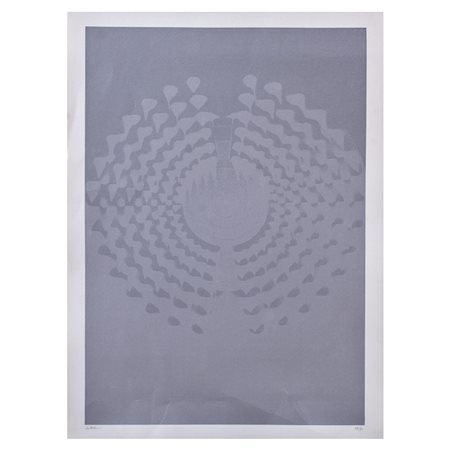 "Compendio: Serigrafia", 1974, serigrafia in argento a due colori, es. 64/90, firmata in basso a sinistra