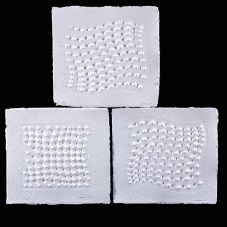 "Superficie I - Superficie II - Superficie III", 1995, tre rilievi eseguiti con impressione a secco su carta, es. II/III, firmati e datati a matita in basso a destra.