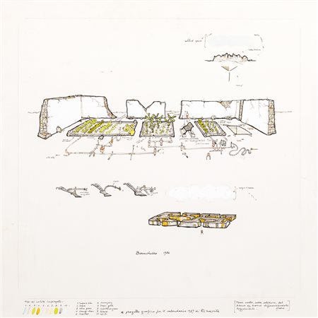 "Progetto grafico per il calendario 1987 di Rinascita", 1986, tecnica mista su carta, firmata e datata in basso al centro, entro cornice -