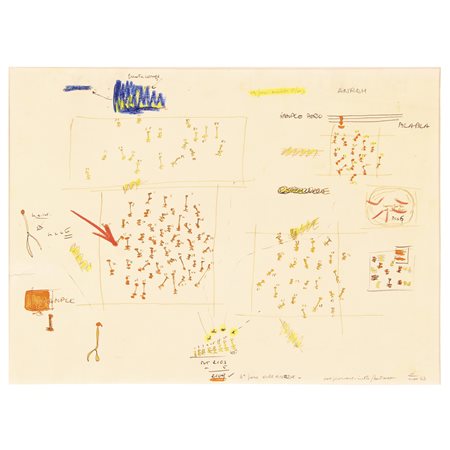 "III° Fase del'ANRDM cooperazione-into/between",1963, tecnica mista su carta, datato e titolato in basso a destra, entro cornice.