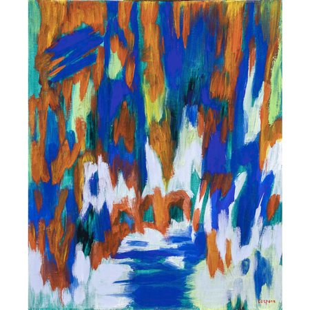 "Il sole nel bosco", 1989, acrilico su tela, firmato in basso a destra e sul retro, entro cornice