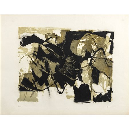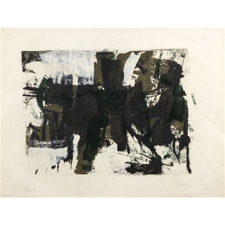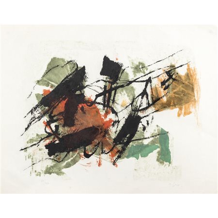 "Astratto", 1959, litografia a colori su carta Japon, es. 34/90, firmata e numerata a matita, editore e stampatore Enrico Castelli, Roma -